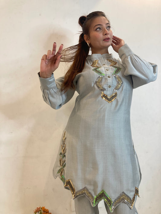 Sufia Grey Simmer Hand Crafted ( set of 3) Co-ord Set
