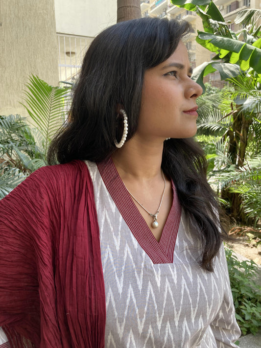 Grey Strips Pure Cotton office wear Straight Kurti Set
