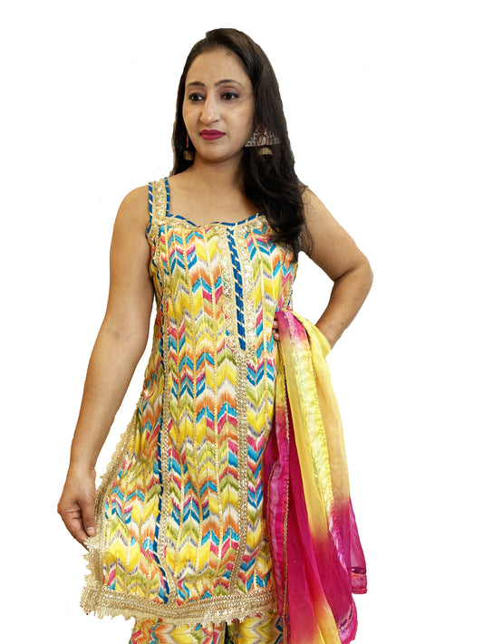 Punch Pink Lehariya Embroidered (Set of 3) Suit Set