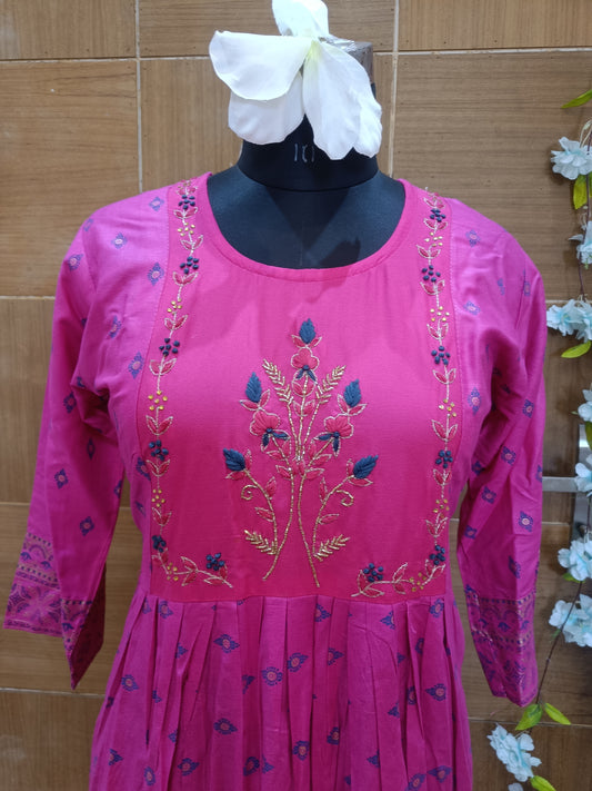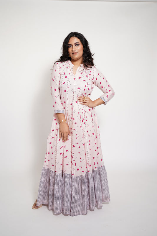 Flesh Pink Long Mulcotton Kalidaar Anarkali Dress