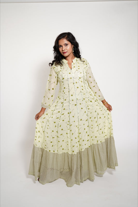 Light Green Long Mulcotton Kalidaar Anarkali Dress
