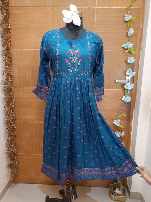 50% OFFBlue Frill Long Anarkali Dress