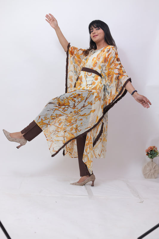 Cream Brown Semi Georgette kaftaan Dress