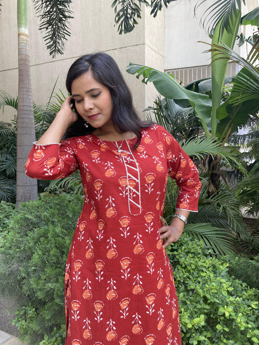 Red Printed pure cotton (set of 2) Suit Set