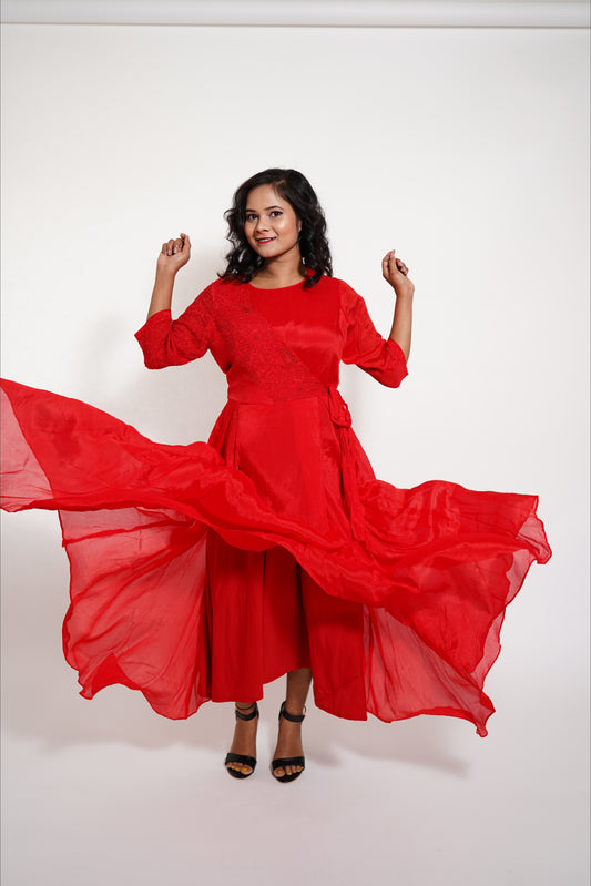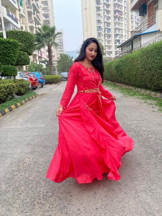 50% OFFRed Drape long Anarkali Dress