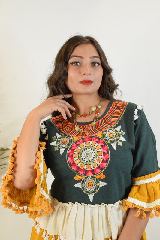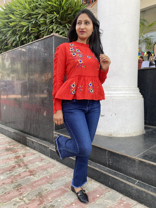 37% OFFRed Embroidery Western Top