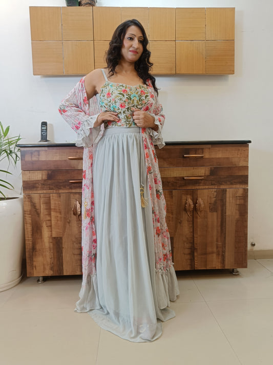 Grey Indowestern Party Wear Lehenga Dress