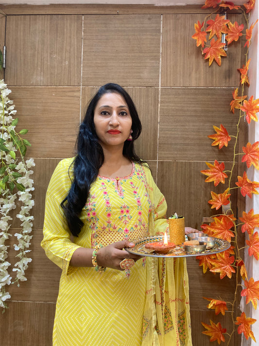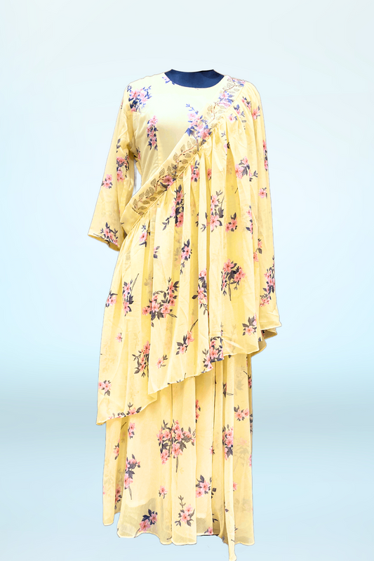 Yellow Kurti with Up & Down Style Kurti Set