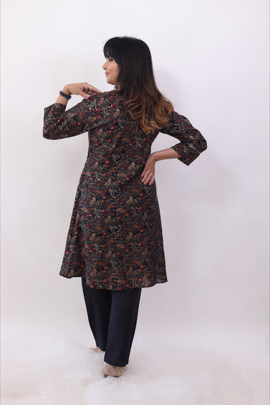 Black printed A -Line (set of 2) co-ord set