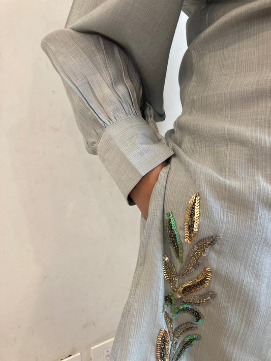 Sufia Grey Simmer Hand Crafted ( set of 3) Co-ord Set
