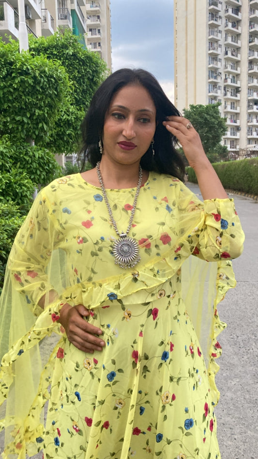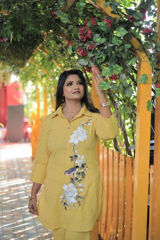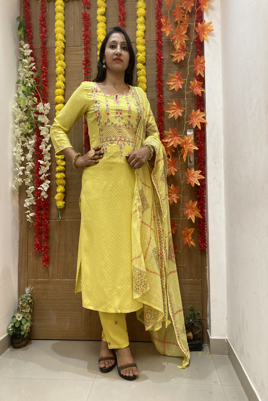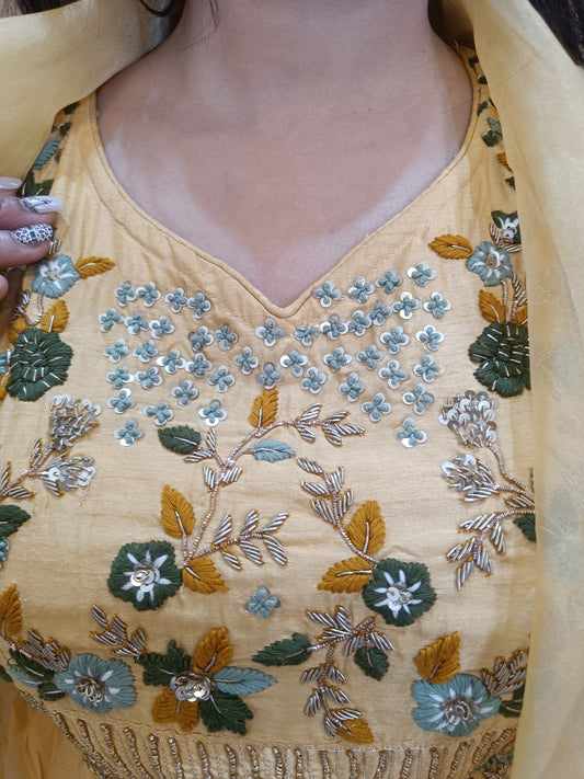 Yellow Embroidered A-Line Suit Set(Set of 3)