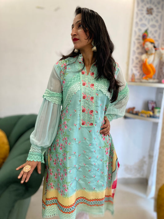 50% OFFMint Green Designer kurti Set