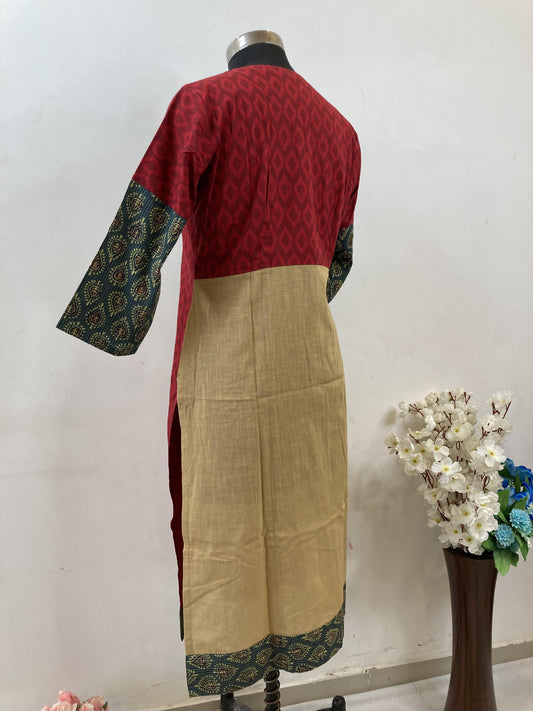 Green Maroon printed pure cotton office wear straight Kurti Set