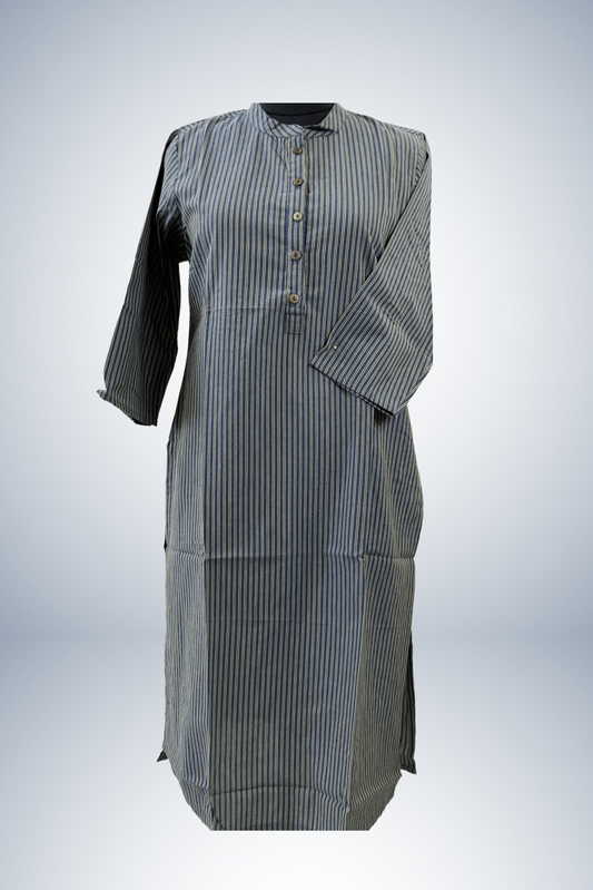 Grey Strips Pure Cotton office wear Straight Kurti Set