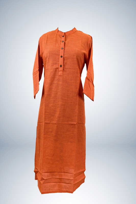 Orange pure cotton office wear straight Kurti Set