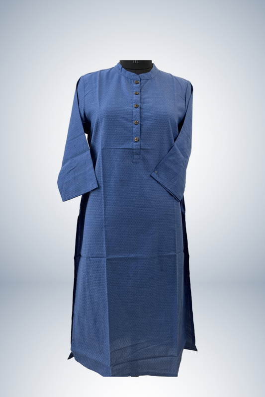 Denim Nehru Collar Pure Cotton Office Wear Straight Kurta Set