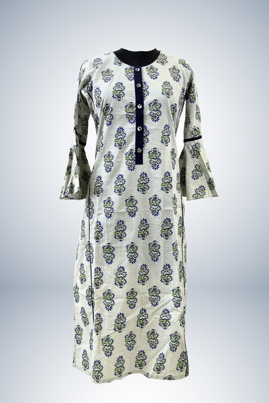 Green Piping printed pure cotton office wear straight Kurti Set