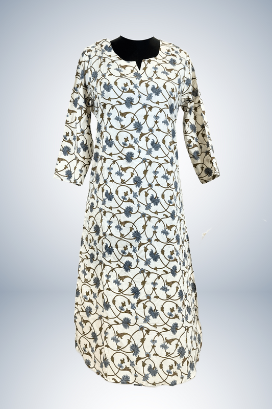 Indigo Blue Printed Cotton A-line dress