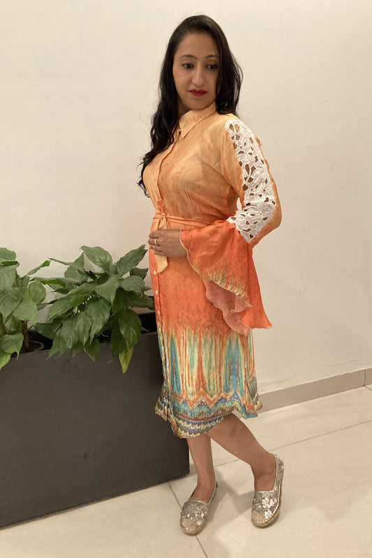 37% OFFPeach Indowestern Kurti Set