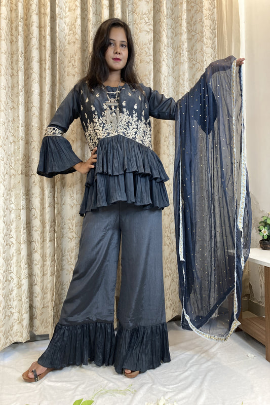 Iron Grey crop Top Plazo (Set of 4 ) Dress