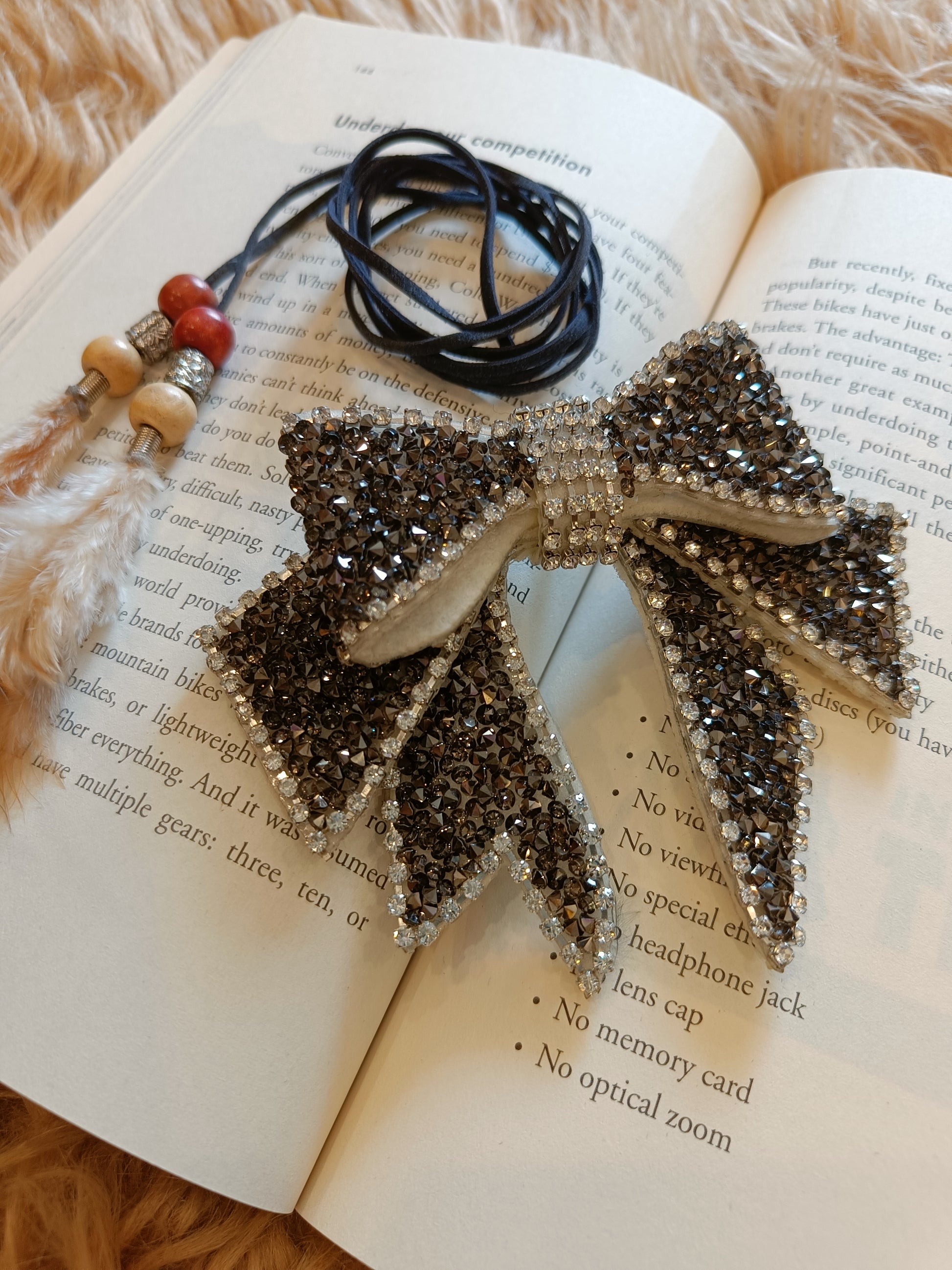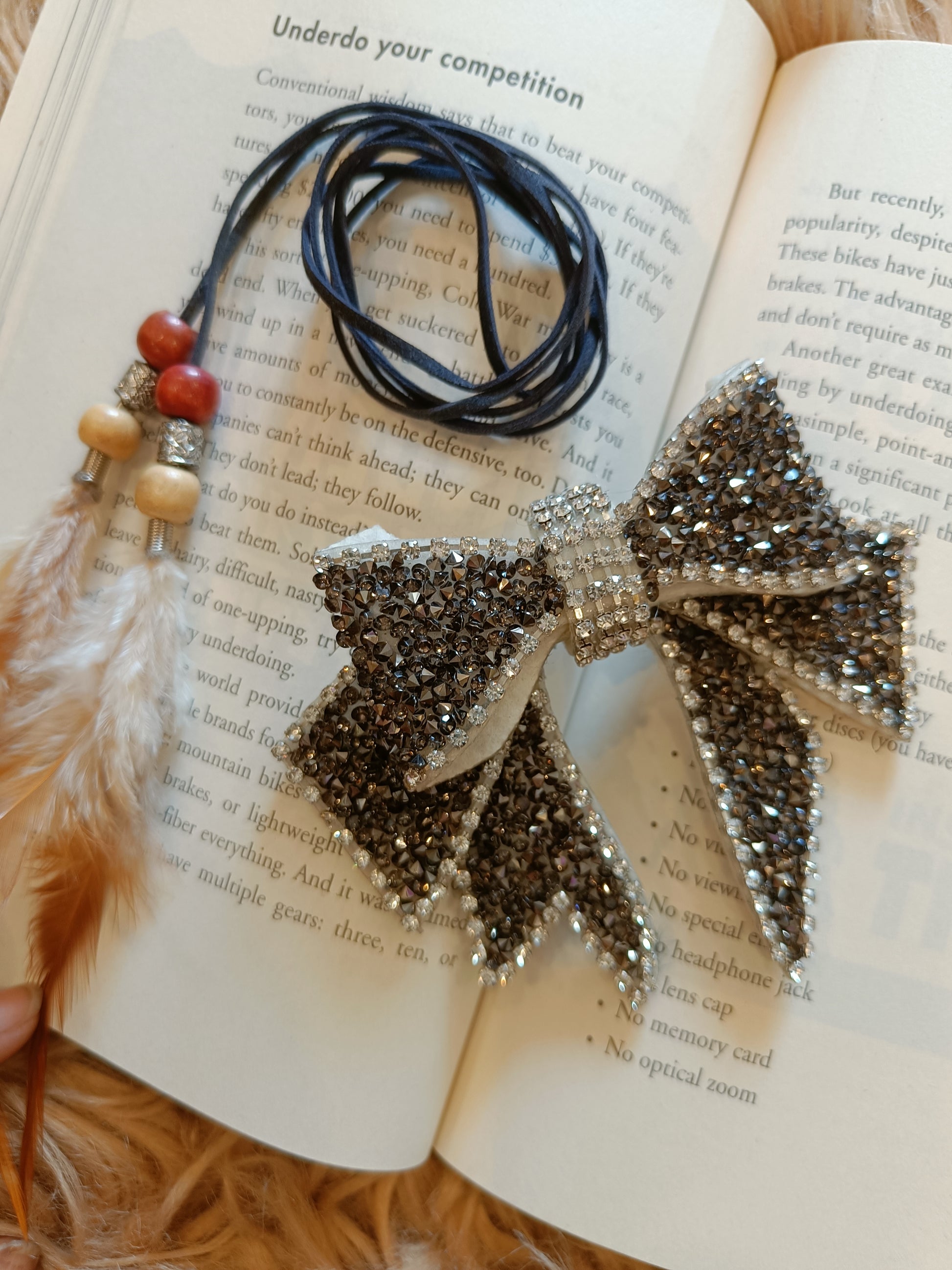 Description -Its a combo of a feather belt ( Blue color) & Detachable bow or Brooch ( Black color Bow with pin backside ) .DM us or whatsapp on 9811330602 for any kind of query .