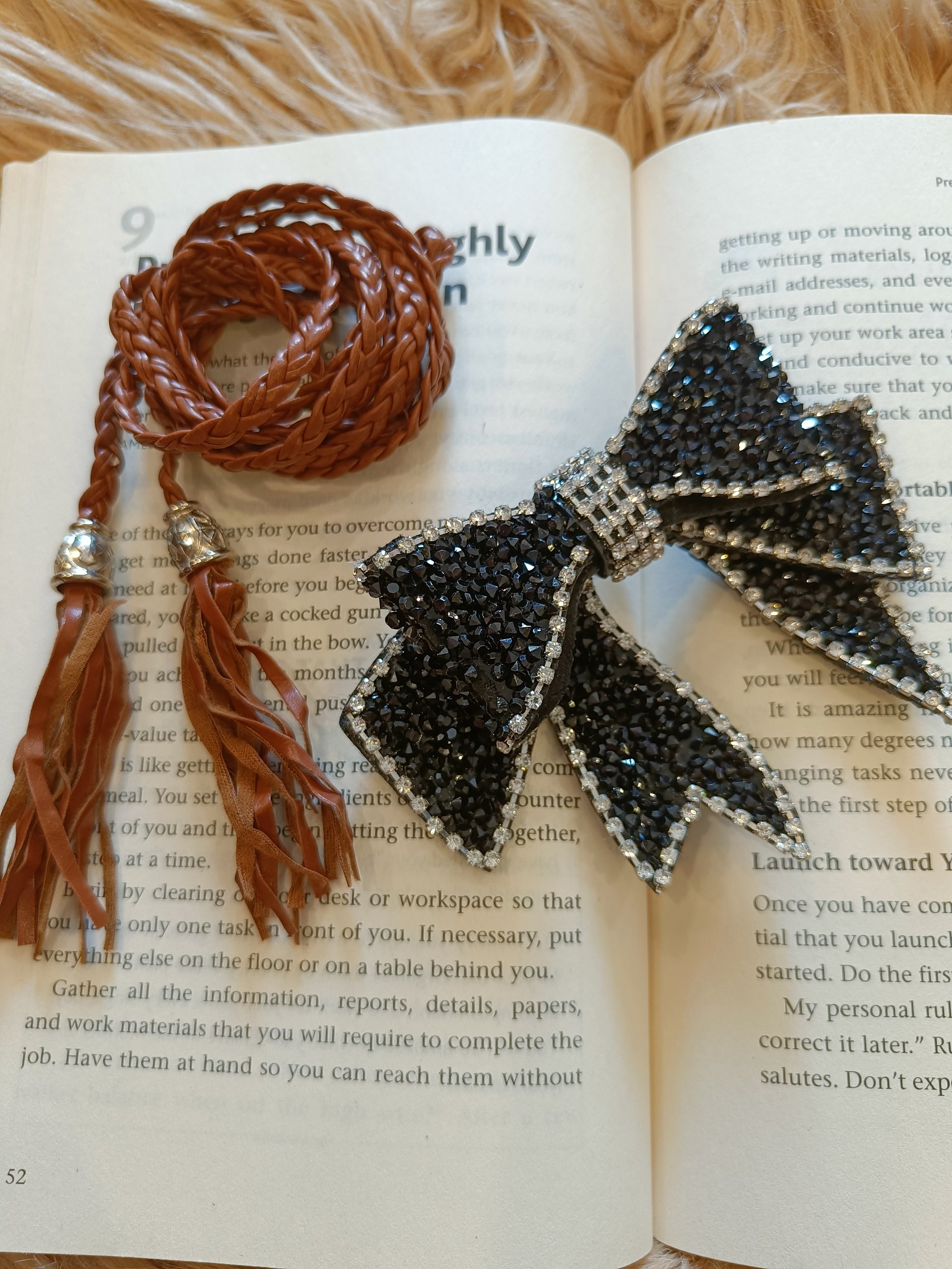 Description -Its a combo of a leather belt & Detachable bow or Brooch (Black color Bow with pin backside ) .DM us or whatsapp on 9811330602 for any kind of query .